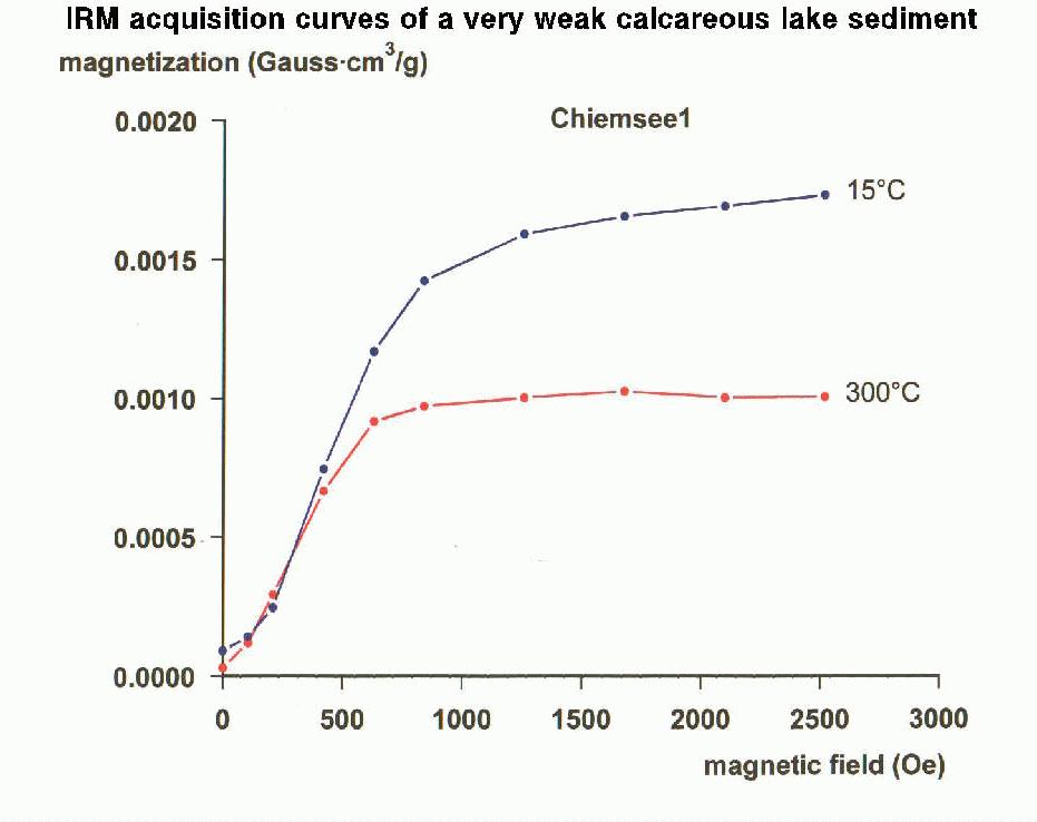 See also IRM acquisition curves at 15 and 300 deg C, a low field (0.063 T) thermomagnetic curves, and hysteresis curves at 15 and 300 deg C